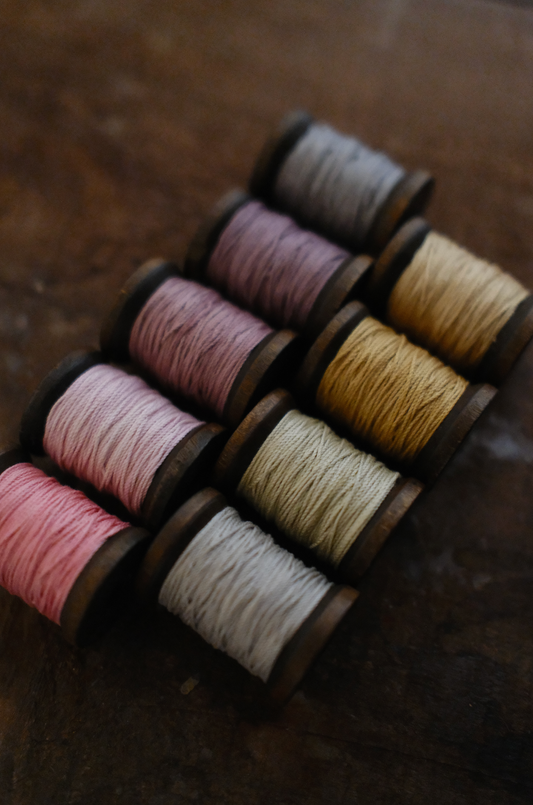 Hilo perlé teñidos con yerba mate y palo Brasil
