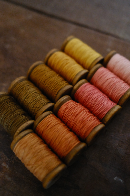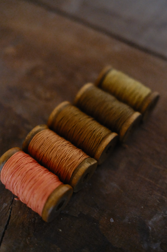 Hilo perlé teñidos con cáscara de cebolla